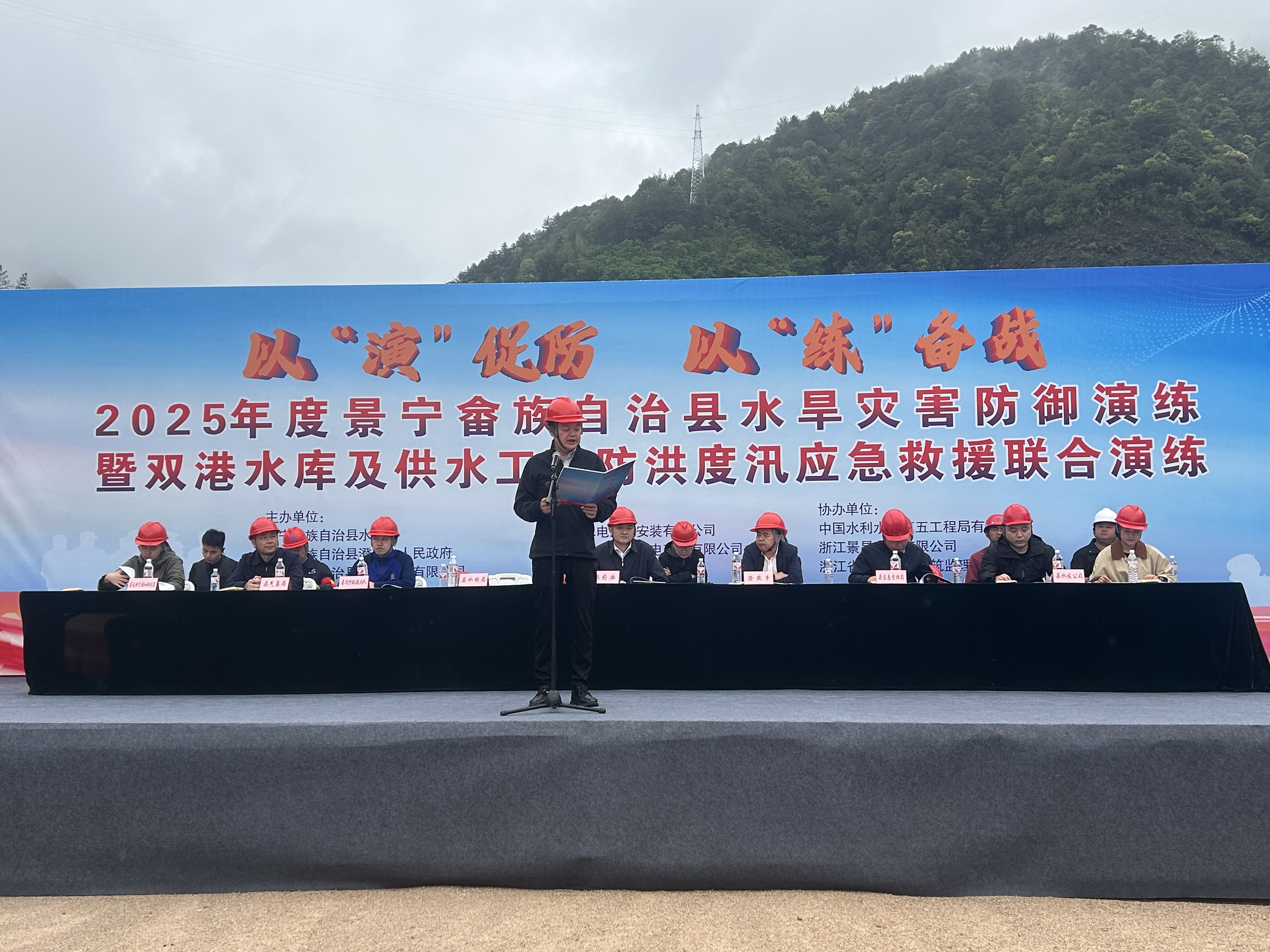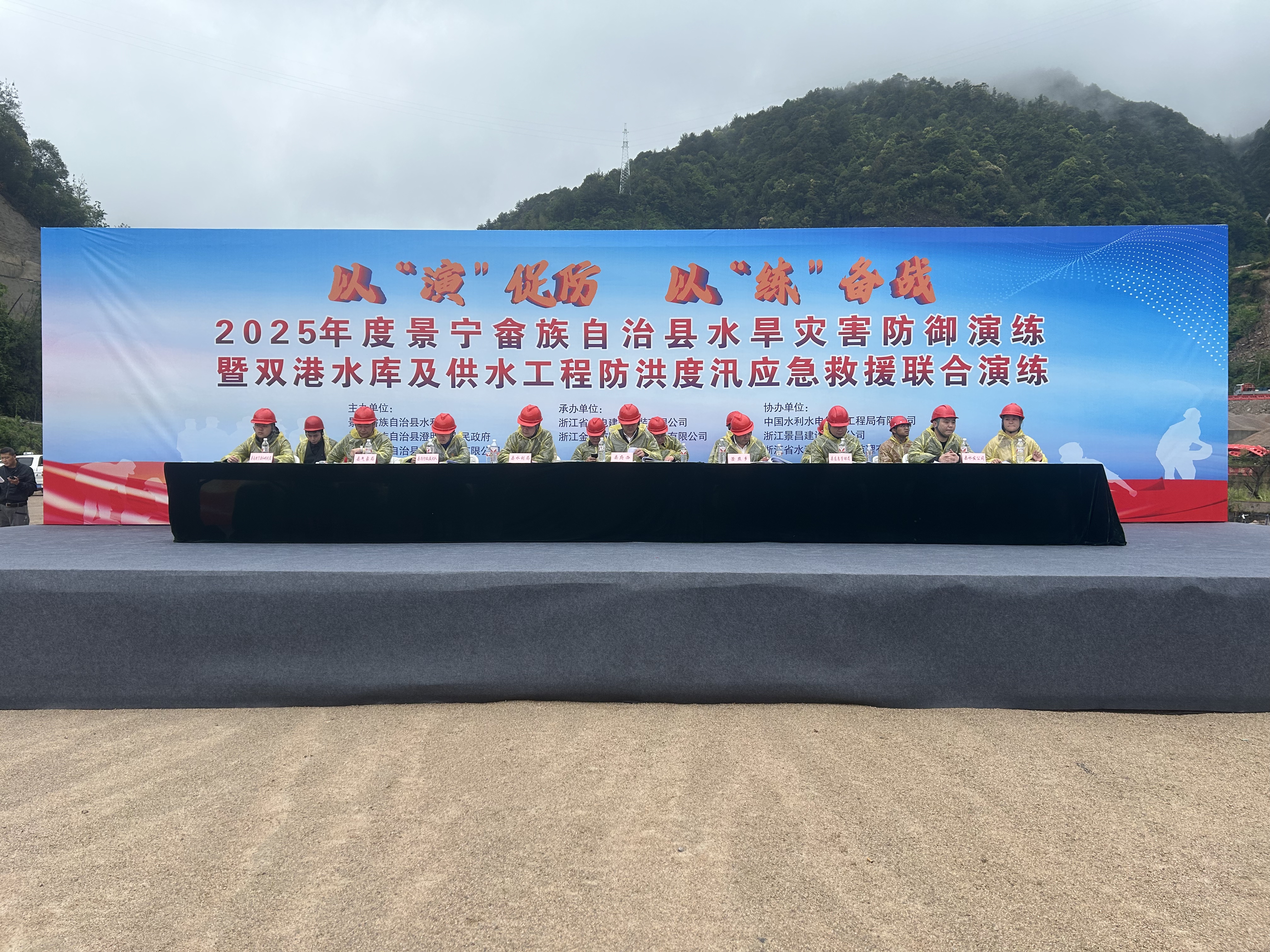 為切實(shí)提高防汛應(yīng)急管理水平,進(jìn)一步增強(qiáng)員工的防汛搶險(xiǎn)安全意識(shí)。4月25日,景寧縣雙港水庫(kù)及供水工程項(xiàng)目開(kāi)展了2025年度景寧畬族自治縣水旱災(zāi)害防御演練暨雙港水庫(kù)及供水工程防洪度汛應(yīng)急救援聯(lián)合演練,此次演練的主題為“以‘演’促防,以‘練’備戰(zhàn)”。全程檢驗(yàn)項(xiàng)目防汛應(yīng)急體系的實(shí)戰(zhàn)能力。景寧畬族自治縣政府辦、縣水利局、縣應(yīng)急管理局、縣氣象局、縣消防救援大隊(duì)指揮中心、縣自然資源和規(guī)劃局、縣水發(fā)公司、澄照鄉(xiāng)政府等單位人員觀摩了此次演練,以及業(yè)主、設(shè)計(jì)、監(jiān)理、各施工單位代表等共計(jì)120余人參加此次演練。