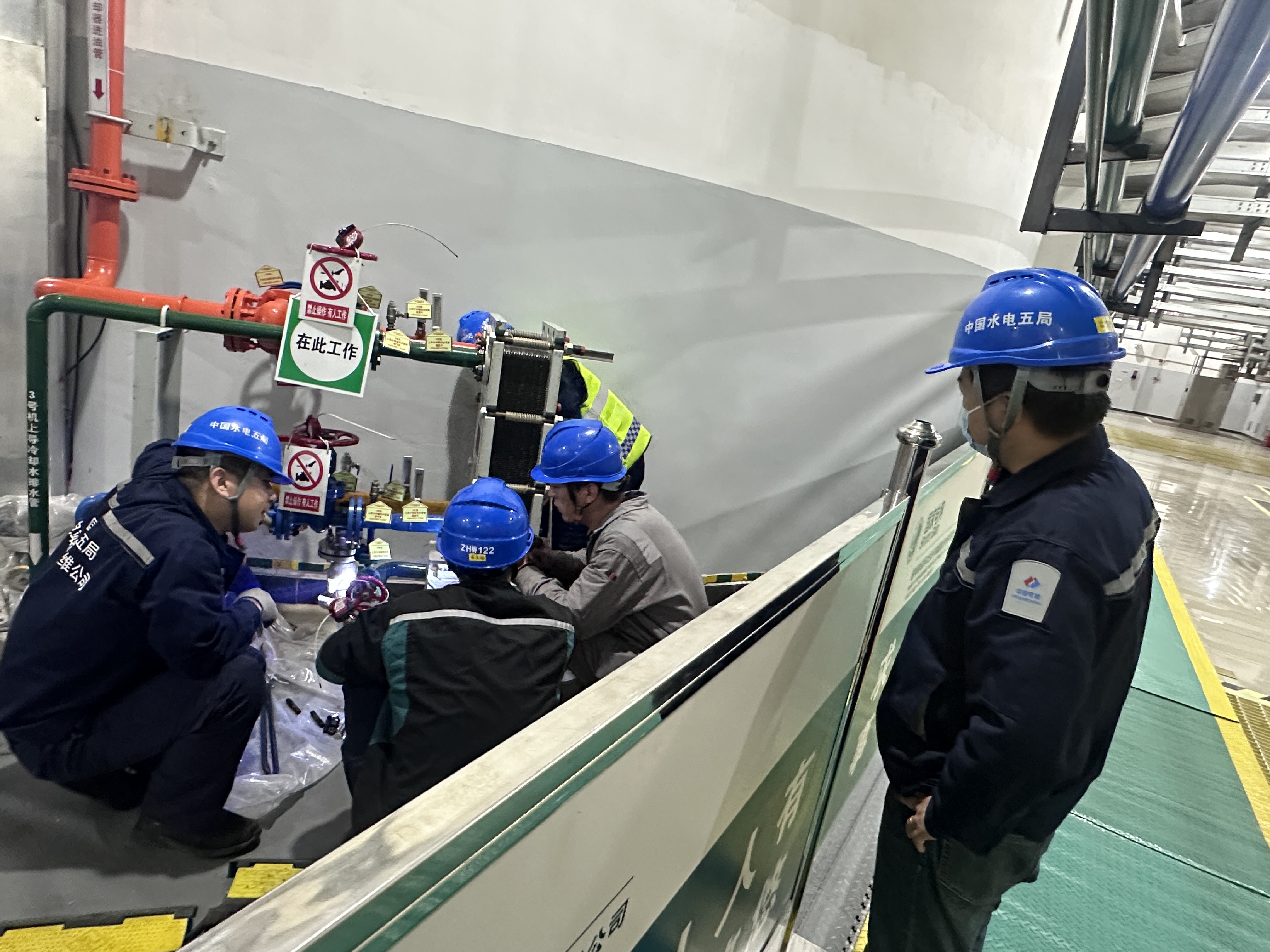 本次檢修任務(wù)涵蓋機(jī)械、電氣專業(yè)等194項(xiàng)標(biāo)準(zhǔn)項(xiàng)目及15項(xiàng)非標(biāo)項(xiàng)目,尤其在冷卻水過濾器腐蝕、油系統(tǒng)密封件老化、高壓油軟管更換改造中面臨多重技術(shù)考驗(yàn)。為解決以上技術(shù)難題,項(xiàng)目部通過工藝創(chuàng)新實(shí)現(xiàn)系統(tǒng)性突破:采用“化學(xué)滲透+高壓水射流”復(fù)合清洗技術(shù),先以化學(xué)藥劑軟化頑固污垢,再用高壓水流全方位清除管壁附著物,大大提高了清洗效率和效果;針對油系統(tǒng)密封老化問題,選用新型密封材料,使用儀器精確測量密封槽尺寸,確保新密封件與密封槽完美匹配;面對復(fù)雜舊管路系統(tǒng)改造,創(chuàng)新應(yīng)用模塊化預(yù)制技術(shù),將長管拆解為標(biāo)準(zhǔn)段在車間完成焊接、防腐等工序后,在進(jìn)行現(xiàn)場精準(zhǔn)拼接,整體效率提升40%。