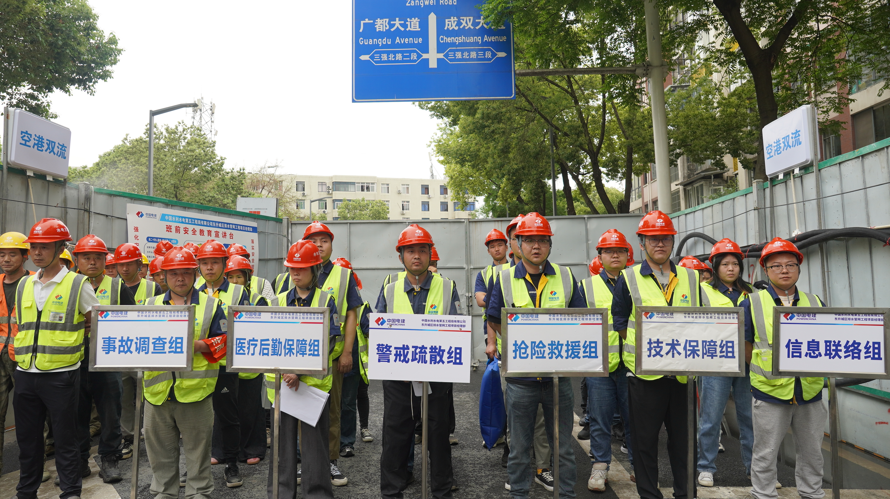 4月23日,東升項(xiàng)目為有效應(yīng)對(duì)汛期可能出現(xiàn)的突發(fā)狀況,提高項(xiàng)目部及施工人員在防洪度汛、基坑坍塌和有限空間作業(yè)時(shí)的應(yīng)急處置能力,分別在三強(qiáng)東路和錦繡路成功開展了實(shí)戰(zhàn)化應(yīng)急演練。項(xiàng)目部及施工現(xiàn)場(chǎng)各班組人員共計(jì)60余人參加。