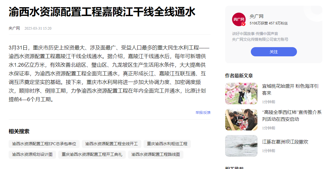 鏈接地址:https://baijiahao.baidu.com/s?id=1828093570595266956&wfr=spider&for=pc&searchword=%E6%B8%9D%E8%A5%BF%E6%B0%B4%E8%B5%84%E6%BA%90%E9%85%8D%E7%BD%AE%E5%B7%A5%E7%A8%8B%E5%98%89%E9%99%B5%E6%B1%9F%E5%B9%B2%E7%BA%BF%E4%BB%8A%E5%A4%A9%E5%85%A8%E7%BA%BF%E9%80%9A%E6%B0%B4&source=qqbrowser